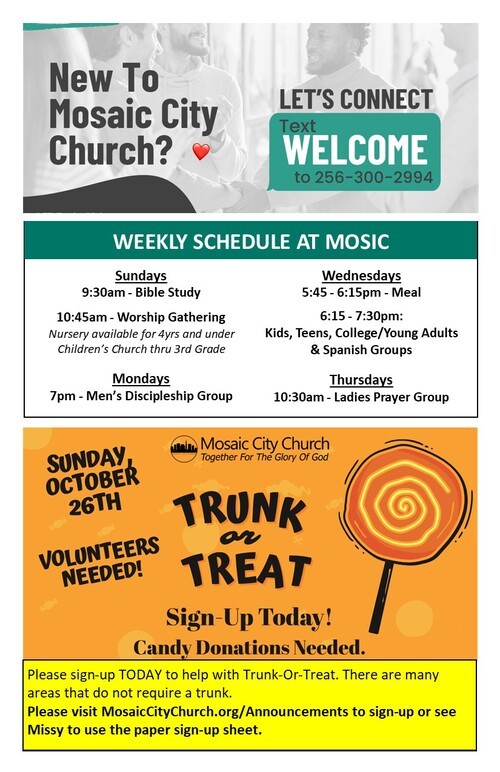 Announcements for the week of October 12, 2025