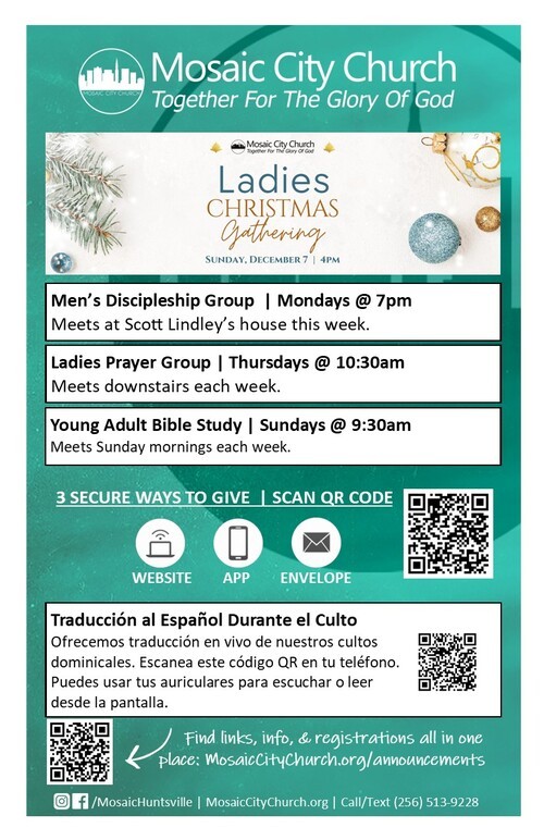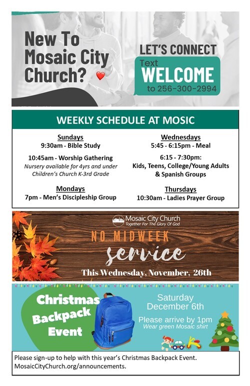 Announcements for the week of November 23, 2025